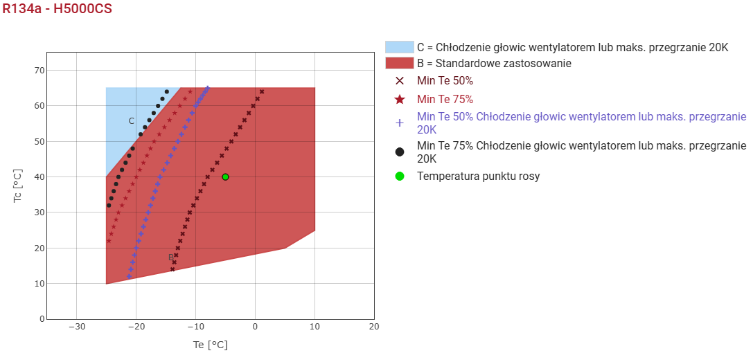 | Temperatura na wyjściu parownika | 20.0 °C | | | | | | | | | | | |