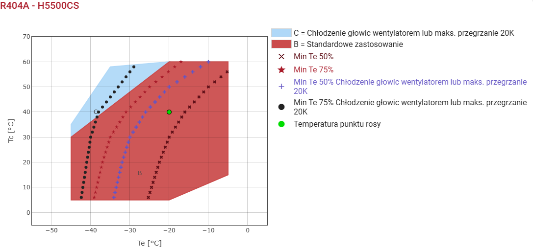 | Temperatura na wyjściu parownika | 20.0 °C | | | | | | | | | | | |