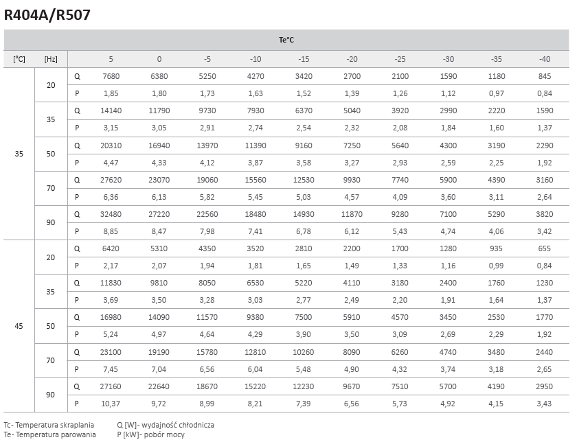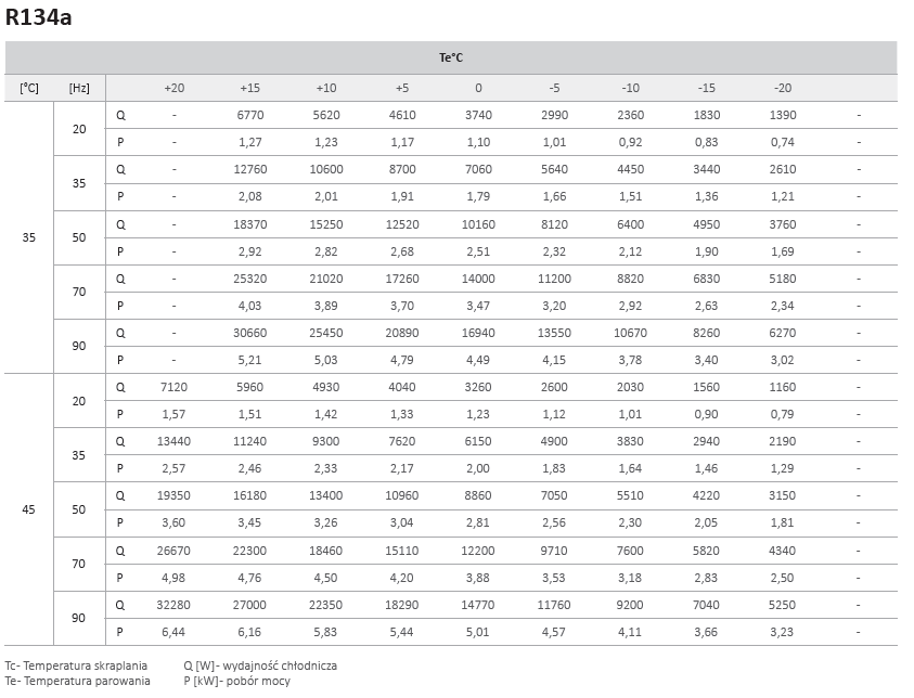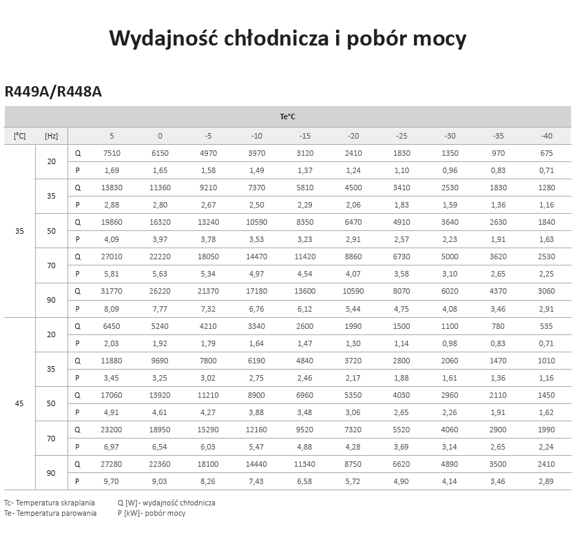 - Wydajność chłodnicza i pobór mocy